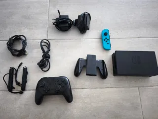 Consola Nintendo Switch con varios accesorios y juegos. - Incluye consola, base, mandos y funda. - Juegos: Just Dance 2017, Just Dance 2018, FIFA 18, FIFA 22, FC 24.