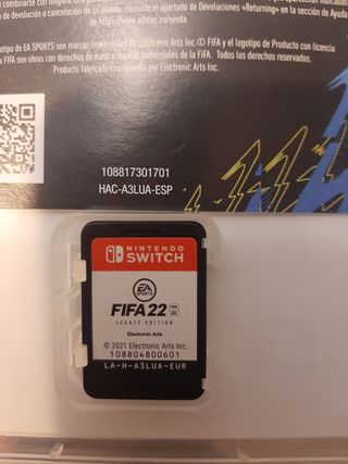 Cartucho del videojuego Fifa 22 Legacy Edition para Nintendo Switch. - Edición Legacy. - Desarrollado por Electronic Arts. - Año de publicación: 2021. - Código de producto: LA-H-A3LUA-EUR.