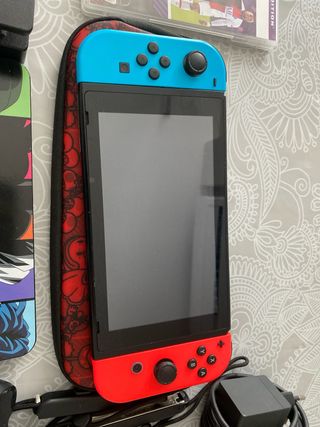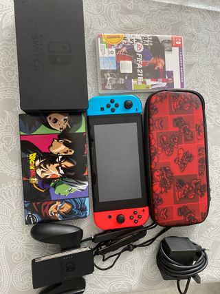 Nintendo Switch en buen estado, con poco uso. Incluye la consola, dos mandos Joy-Con, funda protectora roja con diseño de Super Mario, juego FIFA 21, sin la caja y con todos los accesiorios originales de nintendo - Incluye juego FIFA 21 - Funda protectora roja con diseño de Super Mario. - Consola buenas condiciones - Dos mandos Joy-Con.
