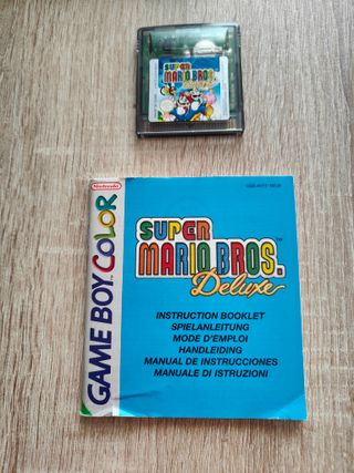 Videojuego Super Mario Bros Deluxe para Gameboy color. Caja con algunos daños. Sin insert. Funciona bien. Contiene manual. PAL ESP. TG: @VentaKlyso Hago envíos por wallapop previo pago por bizum, paypal o revolut (el motivo es la normativa DAC7). Mis más de 750 valoraciones me avalan. Entrega en mano en Lloret y ocasionalmente en Barcelona. Más juegos en mi perfil. Palabras Claves: PS4, PS3, gratis, play, play station, XBOX, Mario, Pokemon, fifa, pes, consola, pley, plei, PS5, videojuego, juego, switch, megadrive