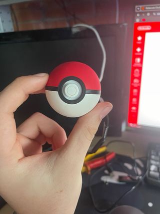 Controlador Poké Ball Plus para Nintendo Switch, compatible con Pokémon: Let's Go, Pikachu! y Pokémon: Let's Go, Eevee!. - Diseño esférico con detalles en rojo y blanco. - Incluye correa de sujeción. - Botón de control en la parte frontal.