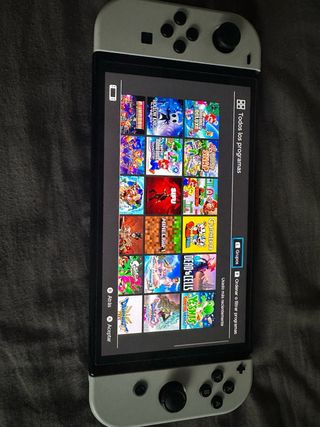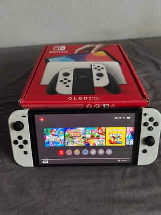 Regalo perfecto de Papá Noel! 🎅 Nintendo Switch OLED con poco uso e impecable. Incluye factura y caja. 🎮 7 JUEGOS: Mario Kart 8, Pokémon Espada, Pokémon Let's Go Eevee, Kirby Dream Land, Minecraft Dungeons, Sonic Racing y Bob Esponja. ✨ EXTRAS: - MicroSD 128GB SanDisk Nintendo. - Estuche oficial y Cargador extra. - Base LAN, Joy-Cons y cables originales. Kit de diversión total para estas Navidades, listo para enchufar y jugar en familia. 🎄 Ahorro enorme respecto a tienda. Entrega en mano o envío. ¡No la dejes escapar! ✨