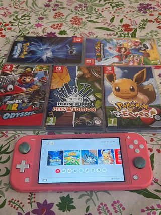 Consola Nintendo Switch Lite en color rosa, si te interesa algún juego (aparte) dímelo y te dejo un buen precio!! - Pokémon Diamante Brillante - Super Mario Odyssey - Mario + Rabbids Kingdom Battle - Pokémon lets go Eevee - House Flipper Pets Edition - Animal Crossing: New Horizons (incluido, instalado) Está en perfectas condiciones pero no tiene caja ni cargador, pero carga con cualquier cable tipo C.
