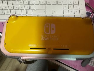 Consola portátil Nintendo Switch Lite en color amarillo. - Pantalla táctil. - Botones de control. - Joystick izquierdo. - Joystick derecho. con funda para guardarla y cargador original