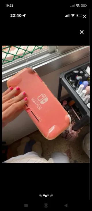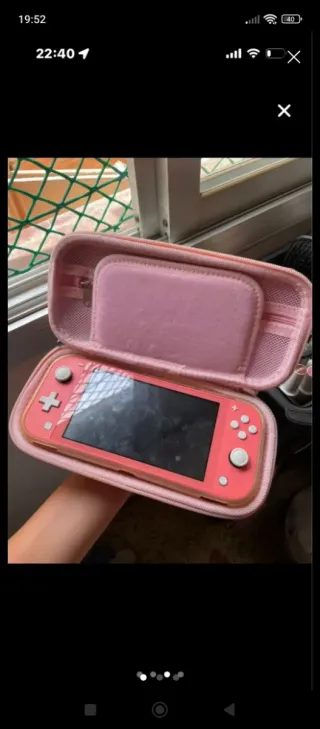 Consola Nintendo Switch Lite en color coral. Incluye funda rosa,con su cargador y caja precio negociable