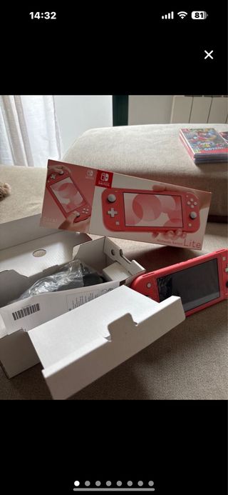 Consola Nintendo Switch Lite en color coral. Ideal para llevar tus juegos contigo. - Incluye consola y caja original. - Cable de carga.