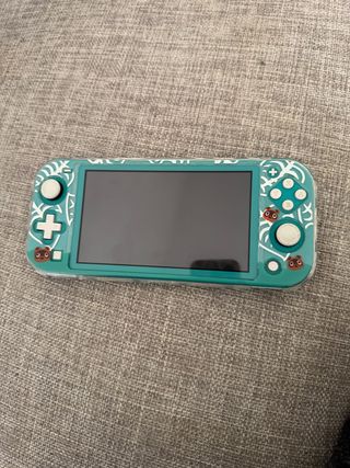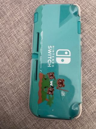 Consola Nintendo Switch Lite en color turquesa con una carcasa con diseño decorativo de animal crossing incluye caja carcasa cristal protector puesto y cargador esta como nueva con poco uso