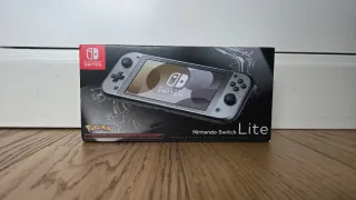 Consola Nintendo Switch Lite con un diseño especial inspirado en Pokémon. Sin uso. Tiene el cable, la consola y el manual de instrucciones. - Edición limitada Palkia & Dialga. - Color gris, plateado y dorado.