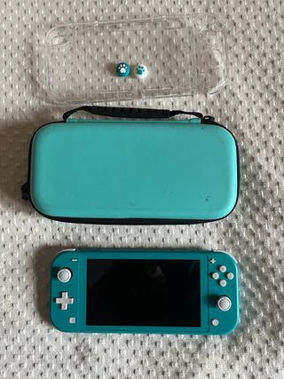 Consola Nintendo Switch Lite en color turquesa en muy buen estado. Incluye funda protectora, estuche de viaje y dos protectores de joystick. La pantalla esta perfecta, sin arañazos, los unicos defectos estéticos son los mostrados en las ultimas fotos. Funciona a la perfección, como el primer dia El juego es solo de muesta, no esta incluido. No incluyo cargador pero la entrego totalmente cargada para que sea probada. Precio ligeramente negociable y hago envios. Servicio postventa serio. Preguntar sin compromiso cualquier otra info!