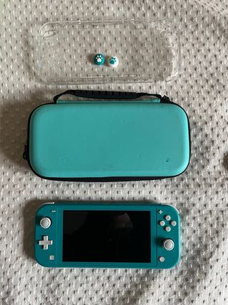 Consola Nintendo Switch Lite en color turquesa. Incluye cargador y funda a juego. Está en perfecto estado, la vendo por poco uso.