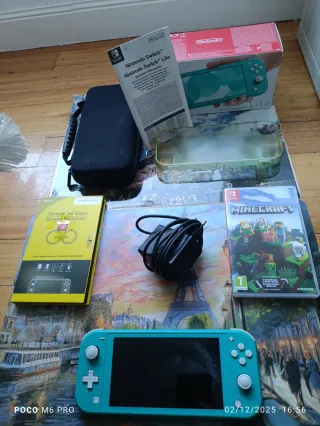 Consola Nintendo Switch Lite en color turquesa, ideal para llevar tus juegos a todas partes. Incluye accesorios para protegerla y cargarla. -Funda rígida negra oficial de Nintendo para guardar la Nintendo Switch Lite - Funda protectora de silicona turquesa. - Protector de pantalla de cristal templado (3 unidades, en la caja hay dos, el otro lo lleva puesto. - Cargador de corriente. -Tarjeta de memoria micro sd oficial de Nintendo formato Zelda de 64gb. -Viene con la caja inicial pero NO TRAE EL JUEGO ONLINE DEL ANIMAL CROSING NI EL CÓDIGO PARA EL ONLINE. ENVÍO SOLO POR CORREOS. VENTA SOLO A PERFILES FIABLES.