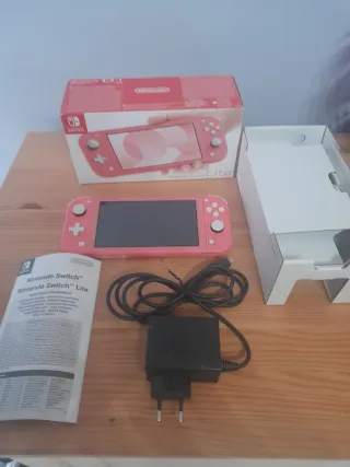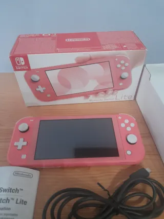 Consola Nintendo Switch Lite en color coral. Incluye caja original y accesorios. - Incluye consola, cargador y manuales y pantalla protectora - Diseño compacto y portátil. En perfecto estado
