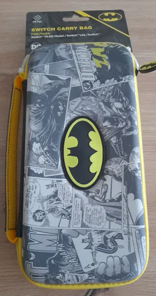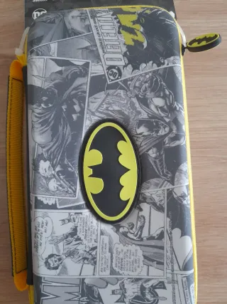 Funda de transporte para Nintendo Switch con diseño de Batman. - Compatible con Nintendo Switch OLED, Lite y modelo estándar. - Diseño estilo cómic de Batman. - Incluye un parche ovalado de Batman. - Borde y cremallera de color amarillo.