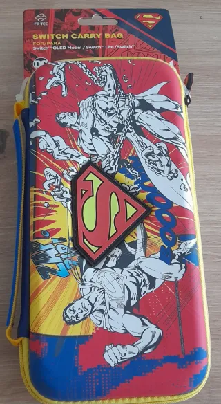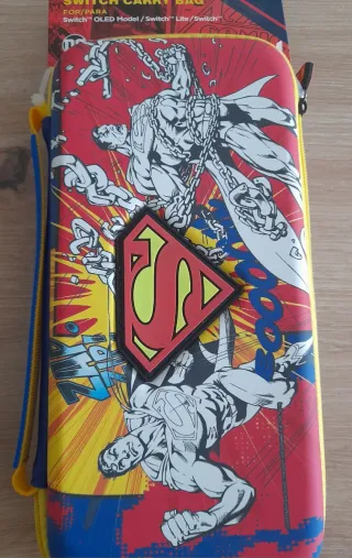 Funda de transporte para Nintendo Switch con diseño de Superman. - Compatible con Nintendo Switch OLED Model, Switch Lite y Switch. - Diseño llamativo con ilustraciones de cómic de Superman. - Incluye un parche de goma del logo de Superman.