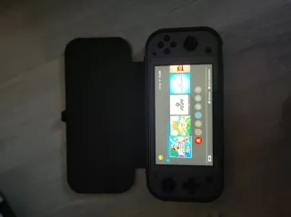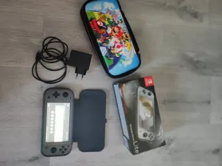 Consola Nintendo Switch Lite en color gris, con funda protectora. - Funda con diseño de Mario Kart. - también incluye una funda protectora con tapa. - Incluye cargador. - los juegos se venden por separado a 20€ cada juego. - incluye caja