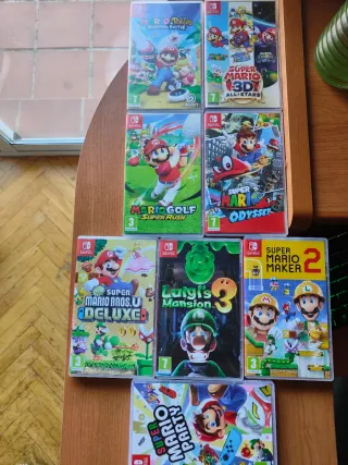 Lote de juegos de Mario para Nintendo Switch. - Mario + Rabbids Kingdom Battle - Super Mario 3D All-Stars - Mario Golf Super Rush - Super Mario Odyssey - New Super Mario Bros. U Deluxe - Luigi's Mansion 3 - Super Mario Maker 2 - Super Mario Party