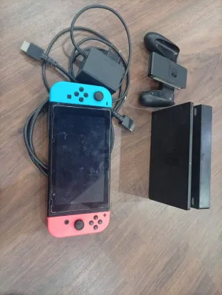 Consola Nintendo Switch con sus accesorios originales. Contiene tambien el juego de Mario party, Mario Kart online, Shinchan con mi profesor en verano online,stardew valley - Incluye base de carga y adaptadores. - Dos mandos Joy-Con. - Funda protectora. - Tarjeta de memoria.