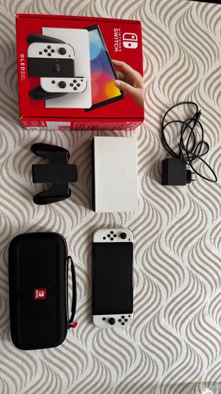 Consola Nintendo Switch OLED en blanco y negro. Incluye todos sus accesorios originales. Esta en perfectas condiciones por poco uso, ni un solo rasguño ni arañazo en pantalla - Base de carga. - Joy-Con (L) y Joy-Con (R). - Agarre para Joy-Con. - Funda de transporte.
