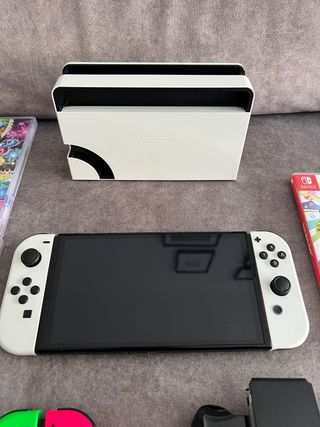 Consola Nintendo Switch modelo OLED. Estado: COMO NUEVO, IMPECABLE. Se ha usado 1 mes como mucho. Los accesorios de sobremesa están casi sin utilizar. INCLUYE FUNDA Se puede hacer pack con juegos. MIRAR PERFIL.