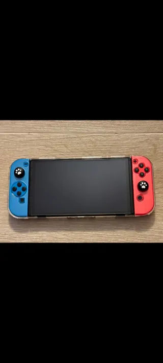 Consola Nintendo Switch modelo OLED en EXCELENTES condiciones de conservación, SIN RASGUÑOS, ni drift en los mandos. Lista para jugar. Incluye accesorios adicionales para mejorar tu experiencia. - Tarjeta Sandisk para tener 128GB extras. - Estuche de Mario para transportar la consola. - Joy-Cons (izquierdo azul, derecho rojo). - Cables HDMI y de corriente oficiales. - Funda silicona Joy-Cons - Mandos ergonómicos para jugar con los Joy-Cons individualmente.