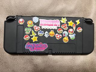 Consola Nintendo Switch OLED en color blanco, funda personalizada con stickers. Tiene un protector de pantalla.Usada literalmente un par de veces. La entrego con los 3 juegos que se ven en la imagen, y los demás accesorios.