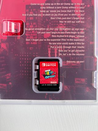 Videojuego Super Mario Odyssey para Nintendo Switch y Switch 2. Está como nuevo. Lo compré, lo he jugado y lo vendo (así que he sido su primer y único propietario). La carátula es en Chino pero el juego está en perfecto castellano. Al introducirlo en la consola se instala y está completamente traducido al español. Dicen que es el mejor plataformas de la historia. Francamente, me ha parecido un juegazo. Muy divertido, súper variado, gráficos perfectos y una banda sonora digna de una película. No te defraudar. Mira en mi perfil, tengo algún juego más.