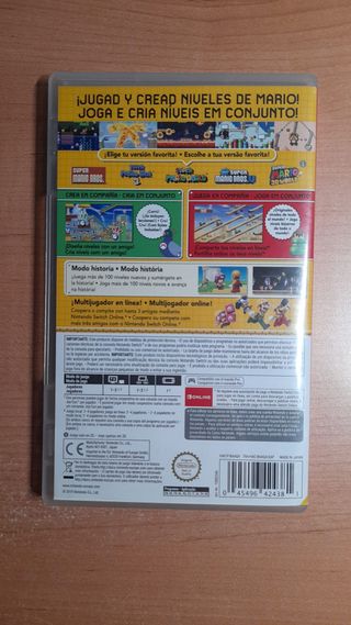 Juego en perfecto estado. Juego original en excelente estado, edición física con caja y cartucho impecables. Crea, comparte y juega niveles ilimitados en el universo de Mario. Diversión garantizada para todas las edades. Caja en excelentes condiciones.