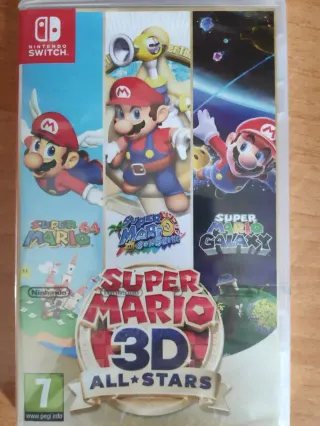 Muy buenas 😊 Este juego para Nintendo Switch incluye tres aventuras clásicas de Mario. - Super Mario 64 - Super Mario Sunshine - Super Mario Galaxy En muy buen estado Hago envíos por Correo certificado o correo ordinario (a petición del comprador) previo pago por Bizum, transferencia, o PayPal amigo.