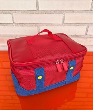 Funda roja y azul para transportar tu Nintendo Switch. Está en perfecto estado. - Diseño inspirado en Super Mario. - Asa para llevarla cómodamente. - Cremallera para cierre seguro.