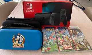 Consola Nintendo Switch, muy buen estado , se ha cuidado mucho. 180€ + 40€ juegos originales en perfecto estado. Incluye: - Consola - Joy cons de Zelda - Joy cons negros - Joy cons azul - Forro negro - Forro Sonic - Base de carga y cables incluidos - Caja original del producto. Con juegos 220€ Negociable los juegos puedes incluirlos o no.
