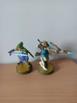 Figuras Amiibo de Link y Zelda de la saga The Legend of Zelda. - Figura de Link con arco y flecha. - Figura de Zelda con espada y escudo. - Bases decoradas con motivos del juego. más juegos en mi perfil, hago envios tags: Mario kart, Mario Odyssey, Zelda, super mario 3d all stars, Pokémon, Nintendo, switch, ps4, pley, xbox,lote