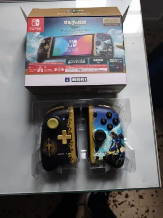 Controladores Hori Split Pad Pro para Nintendo Switch, edición especial The Legend of Zelda: Tears of the Kingdom. - Diseño inspirado en el juego. - Forma ergonómica para mayor comodidad. - Botones traseros asignables. Usados solo un par de veces y conservados en muy buen estado y guardados en caja Versión japonesa pero totalmente compatibles