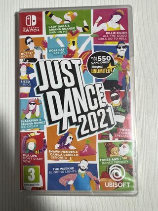 Videojuego Just Dance 2021 para Nintendo Switch, completamente nuevo y precintado. - Incluye más de 550 canciones en Just Dance Unlimited. - Canciones de artistas como Lady Gaga, Ariana Grande, Billie Eilish, NCT 127, Doja Cat, Lizzo, Blackpink, Selena Gomez, Dua Lipa, Shawn Mendes, Camila Cabello, The Weeknd y Tones and I. - Clasificación PEGI 3.