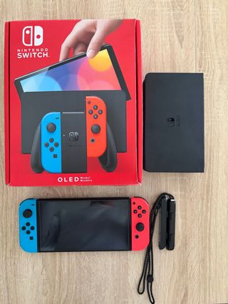 Consola Nintendo Switch OLED modelo 2022, completa y lista para usar. - Incluye todos los accesorios originales. - Joy-Con en colores azul y rojo.