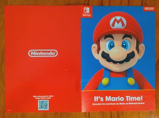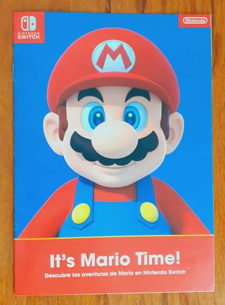 Folleto promocional de Super Mario para Nintendo Switch. Información acercade Mario Kart, Bowser´s Fury y Mario odissey. En buen estado de conservación. - Diseño con el personaje Mario. - Incluye el logo de Nintendo Switch. - Texto It's Mario Time! y Descubre las aventuras de Mario en Nintendo Switch.
