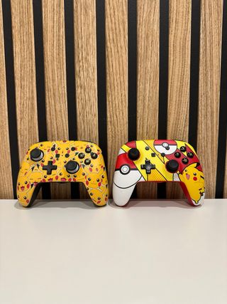 OFERTA!!! Dos mandos de Nintendo Switch con un diseño inspirado en Pokémon. - 1 Mando con diseño de Pikachu. Esta como nuevo ✅ - 1 Mando con diseño de Poké Ball y Pikachu (fallan algunos botones a veces, pero funciona) - Cable conector