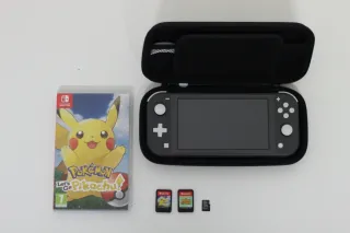 Nintendo Switch Lite en color gris. Tiene cristal templado en la pantalla. La consola funciona perfectamente y no tiene ninguna marca de uso. Incluye: - Funda de transporte negra. - Tarjeta de memoria microSD de 32 GB. - Juego Pokémon: Let's Go, Pikachu! - Juego Animal Crossing: New Horizons (sin caja). Se vende todo junto, no por separado.