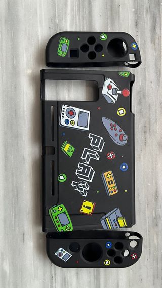 Funda protectora para Nintendo Switch con un diseño divertido y colorido. - Material de silicona suave. - Protege contra golpes y arañazos. - Acceso completo a botones y puertos.