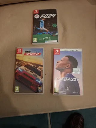 Lote de tres juegos para Nintendo Switch. - EA SPORTS FC 24 - Super Street Racer - FIFA 22 Legacy Edition