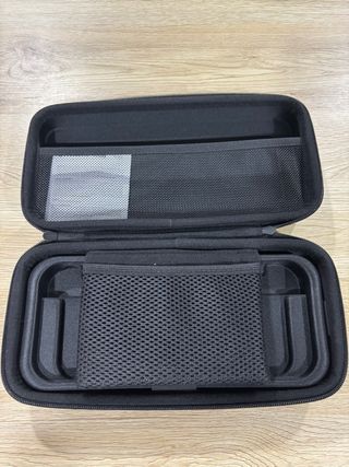 Funda protectora para Nintendo Switch. Válida para la switch 1 y 2, está nueva sin usar. - Diseño rígido y duradero. - Interior con compartimentos para accesorios. - Cierre de cremallera.