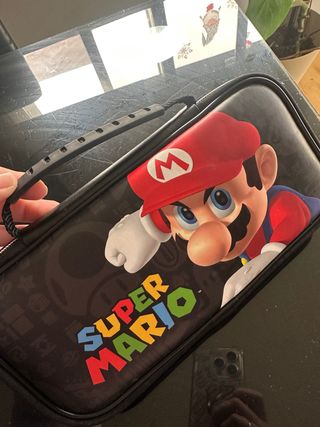 Maletín de transporte para Nintendo Switch con diseño de Super Mario. Protege tu consola y accesorios con estilo. - Diseño oficial de Super Mario. - Compartimentos internos para juegos y accesorios. - Asa de transporte resistente. Como nuevo. No se uso ,porque le regalaron otra .