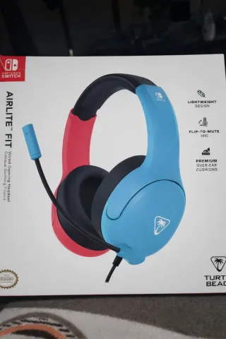 Los auriculares para gaming Airlite Fit (edición azul neón y rojo) . -Diseño ligero: Garantiza comodidad total durante sesiones de juego prolongadas. -Micrófono abatible: Micrófono bidireccional que se silencia automáticamente al levantarlo (función flip-to-mute). -Almohadillas premium circumaurales con aislamiento de ruido para mayor comodidad y mejor respuesta de graves. -Compatibilidad: Diseñados para Nintendo Switch, Switch Lite y Switch OLED, pero compatibles con cualquier dispositivo con puerto de 3,5 mm. -Producto con licencia oficial de Nintendo *NUEVOS SIN HABER SIDO USADOS