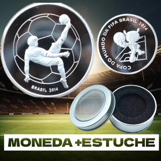 Moneda conmemorativa de Brasil 2014, bañada en PLATA, con diseño de fútbol. - Incluye cápsula protectora. - Presentada en una caja con hueco para la moneda. - Diseño de un futbolista pateando un balón. 1 MONEDA + 1 CÁPSULA PROTECTORA + 1 CAJA DE COLECCIÓN. # colección céntimos monedas edición limitada especial oro plata latón cobre níquel 999 925 onza oz original auténtica antigua coleccionista dollar centavo peseta duro España Franco Roma Grecia vaticano monaco san marino malta papa Benedicto Juan Pablo Nintendo switch decoración hogar futbolista deporte entrada partido camiseta firmada autógrafo equipación portero