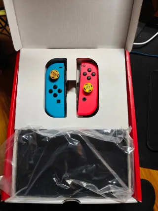 Consola Nintendo Switch modelo OLED versión azul y roja. Como nueva, comprada el pasado mes de junio, la vendo porque la he renovado por la Switch 2. Está en perfecto estado salvo por algunos roces superficiales en el joystick izquierdo (Culpa del Hades 2... pero funciona perfectamente😅). A tener en cuenta únicamente que es la versión de China, pero viene con adaptador del enchufe como se puede ver en la foto. Esta versión en todo lo demás es igual a la europea, la he utilizado sin problema. - Incluye todos los accesorios. - Pantalla OLED para una experiencia visual mejorada.