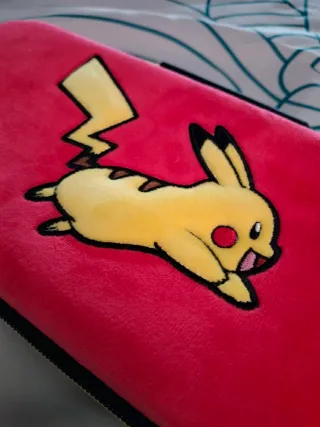 Funda protectora para Nintendo Switch de Pikachu, original, con efecto terciopelo. Prácticamente nueva, con dos grips en forma de pokeball para los joystick.