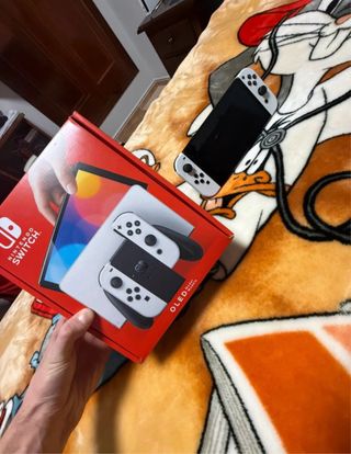 Consola Nintendo Switch OLED en su caja original. Vendo Nintendo Switch Oled, envuelto en su caja original con todos sus componentes en un muy buen estado, pantalla sin rasguños, lo único los joy-con lo que sería la goma de los joystick un tanto desgastado.