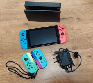 Consola Nintendo Switch con Joy-Cons en azul y rojo. La consola funciona perfectamente LOS MANDOS SON PARA PIEZAS O REPARAR (Van incluidos en el precio) SE VENDE SOLO LA CONSOLA. SIN CABLES NI DOCK. LO QUE SE VE EN LAS FOTOS NO SÉ ACEPTAN DEVOLUCIONES NI RECLAMACIONES NO SE CONTESTAN OFERTAS, REGATEOS O INTERCAMBIOS