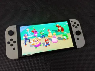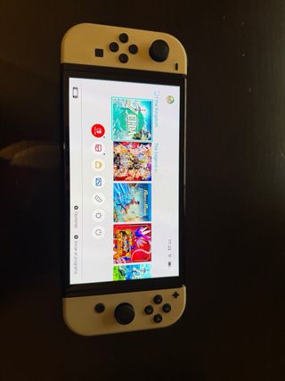 Consola Nintendo Switch modelo OLED en color blanco, en excelente estado. Con dos juegos y porta consolas de mario incluido en el precio - Incluye consola, Joy-Cons y caja original. - Pantalla OLED vibrante. - Diseño elegante y moderno