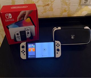Como nueva, apenas usada. Incluye caja, funda y todos los accesorios originales. Consola Nintendo Switch modelo OLED en color blanco con 64GB de almacenamiento interno. - Pantalla OLED. - Almacenamiento interno de 64GB. - Incluye Joy-Con blancos.