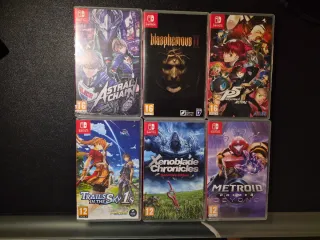 Conjunto de carátulas originales para juegos de Nintendo Switch. - Astral Chain - Blasphemous II - Trails in the Sky 1st Chapter - Xenoblade Chronicles: Definitive Edition - Metroid Prime 4: Beyond - Persona 5 Royal No incluyen el juego.